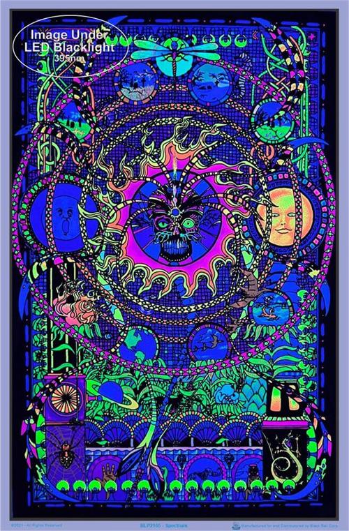 Add amazing colour to any space with this fantastic SPECTRUM BLACKLIGHT poster from our FANSTASY/GOTHIC range. A Blacklight poster is printed with inks which fluoresce under blacklight bulb. The inks contain phosphors which cause them to glow when exposed to the ultraviolet light emitted from black light bulbs. They originate from the 1960s but are incredibly popular today for your psychedelic caves and glow-in-the-dark parties. We have the biggest range in Australia covering pop and cannabis culture, gothic and fantasy art, nature and music.
