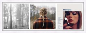 Add character to any space with this fantastic TAYLOR SWIFT TRIO FOLKLORE, EVERMORE AND MIDNIGHTS framed album covers from our TAYLOR SWIFT collection. Designed to inject personality into any room, our framed picture of Taylor Swift’s albums boasts remarkable affordability without compromising on quality. The white Homestead Style frame has a weathered and distressed finish which means that no two pieces of timber are alike.